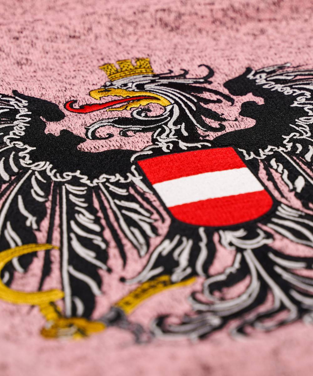 Der kultige rot-weiß-rote Metallaufnäher in Kombination mit der Logo Stickerei der Kultmarke Hoamatkult rundet das Österreich Design stilvoll ab.