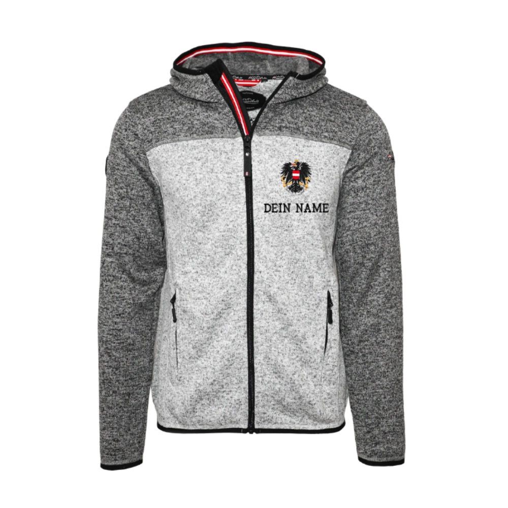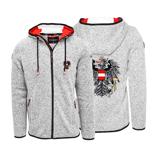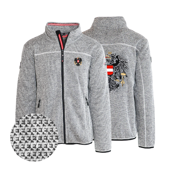 Die funktionale, atmungsaktive und warme Srickfleeceweste mit Österreich Adler eignet sich perfekt zum Wandern und ist ein echter Hütten Klassiker. Die Almjacke wird besonders gern zum Wandern angezogen und genießt besonders in den Bergen immer größere Beliebtheit.