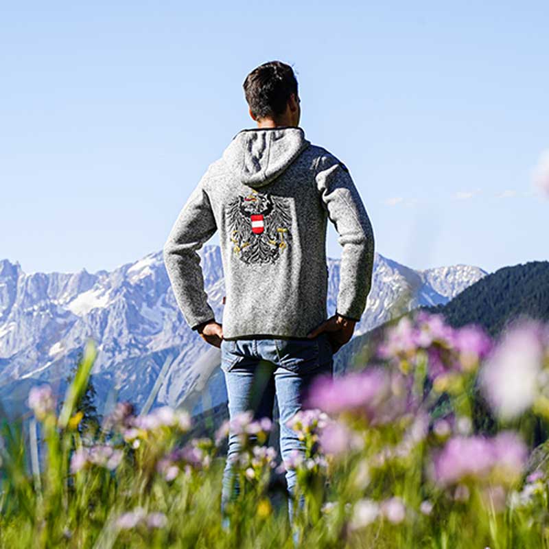 Die Kultjacke ist österreichischer Lifestyle pur. Gemütlich und gesellig, trendig und trachtig, traditionell und modern. Verbunden mit unserer Landschaft und verwoben mit unserer Kultur.