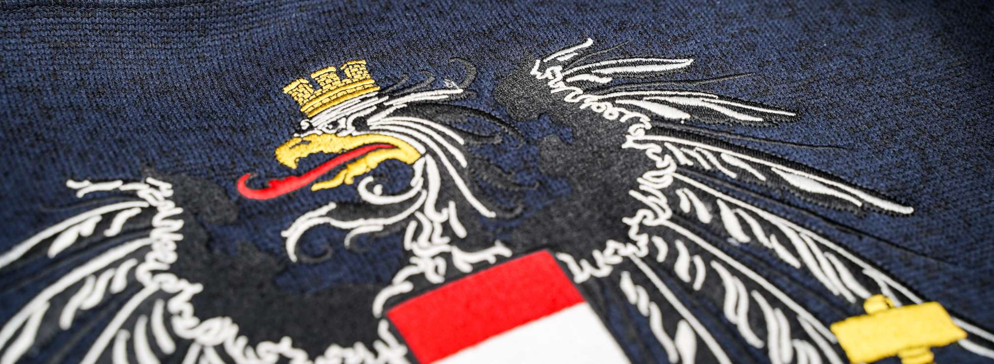 Liebevoll veredelt in Österreich, verleihen die hochwertigen Stickveredelungen der Kultjacke einen besonders hohen Wiedererkennungswert.