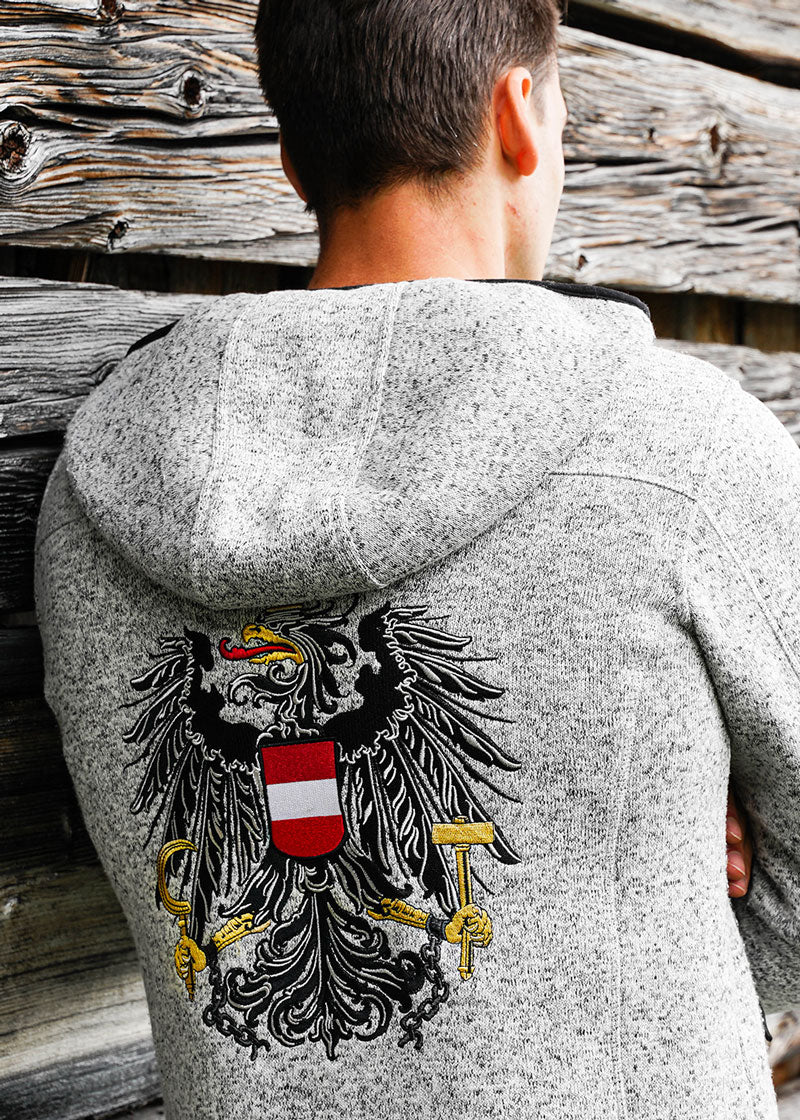 Ob als Trachtenjacke zum Volksfest, sportliche Bergjacke zum Wandern, urbane Strickfleeceweste in der Stadt, Patriotenjacke für echte Österreich Fans, oder als Übergangsjacke im Frühling & Herbst - die Österreich Adler Jacke ist mutlifunktional und ein echter Allrounder.