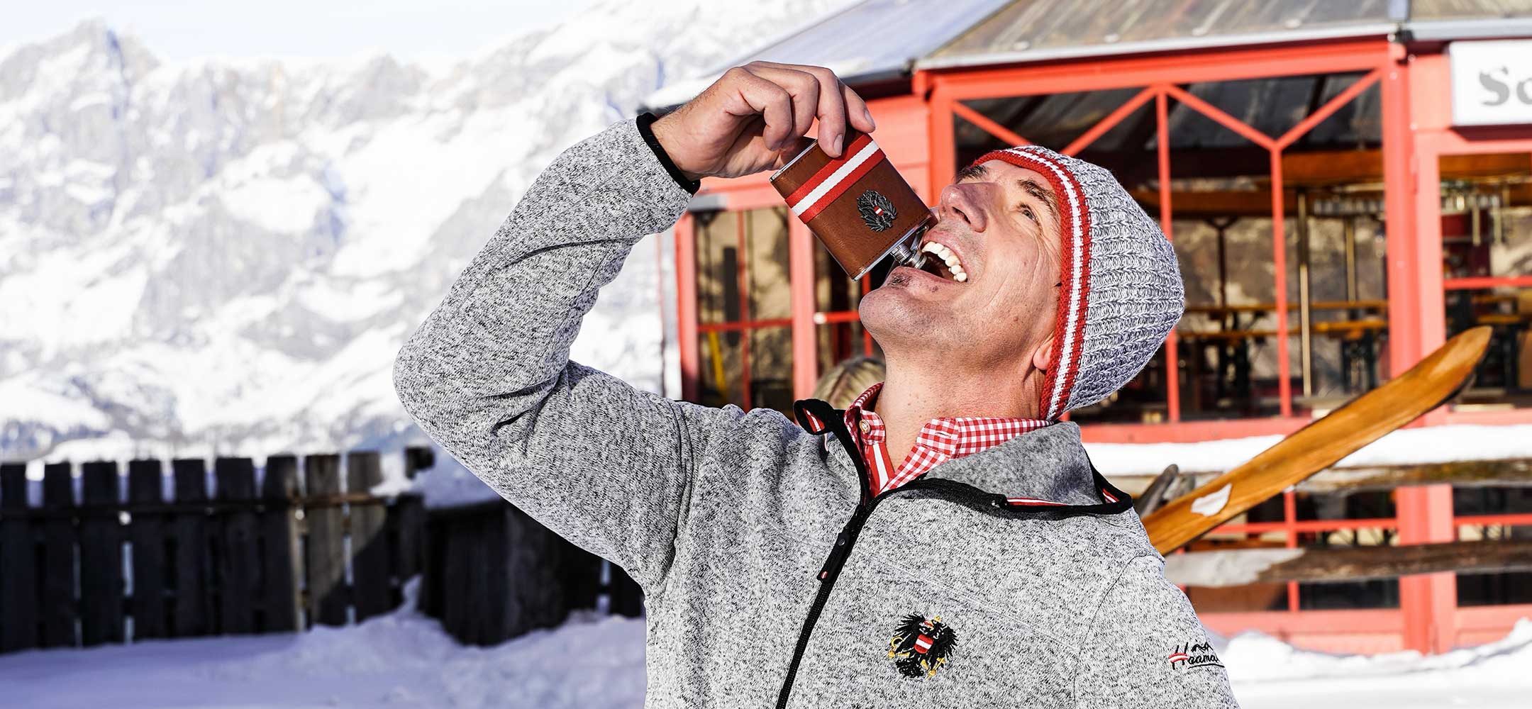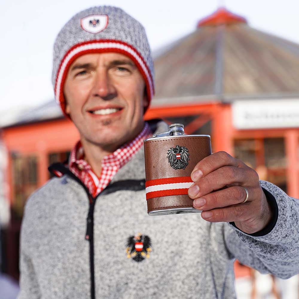Die hochwertigen Österreich Flachmänner aus Edelstahl mit Lederbezug sind ein echter Hingucker in jeder Runde und der perfekte Begleiter für unterwegs auf Wanderungen, Skitouren oder fürs Volksfest. Die feine Leder Prägung des Österreich Wappens in Kombination mit der edlen Fahnen Stickerei bilden ein echtes optisches Highlight. Der Hoamatkult Flachmann kann mit einer persönlichen Wunschgravur veredelt werden für ein echtes Unikat und einzigartige Geschenkidee.
