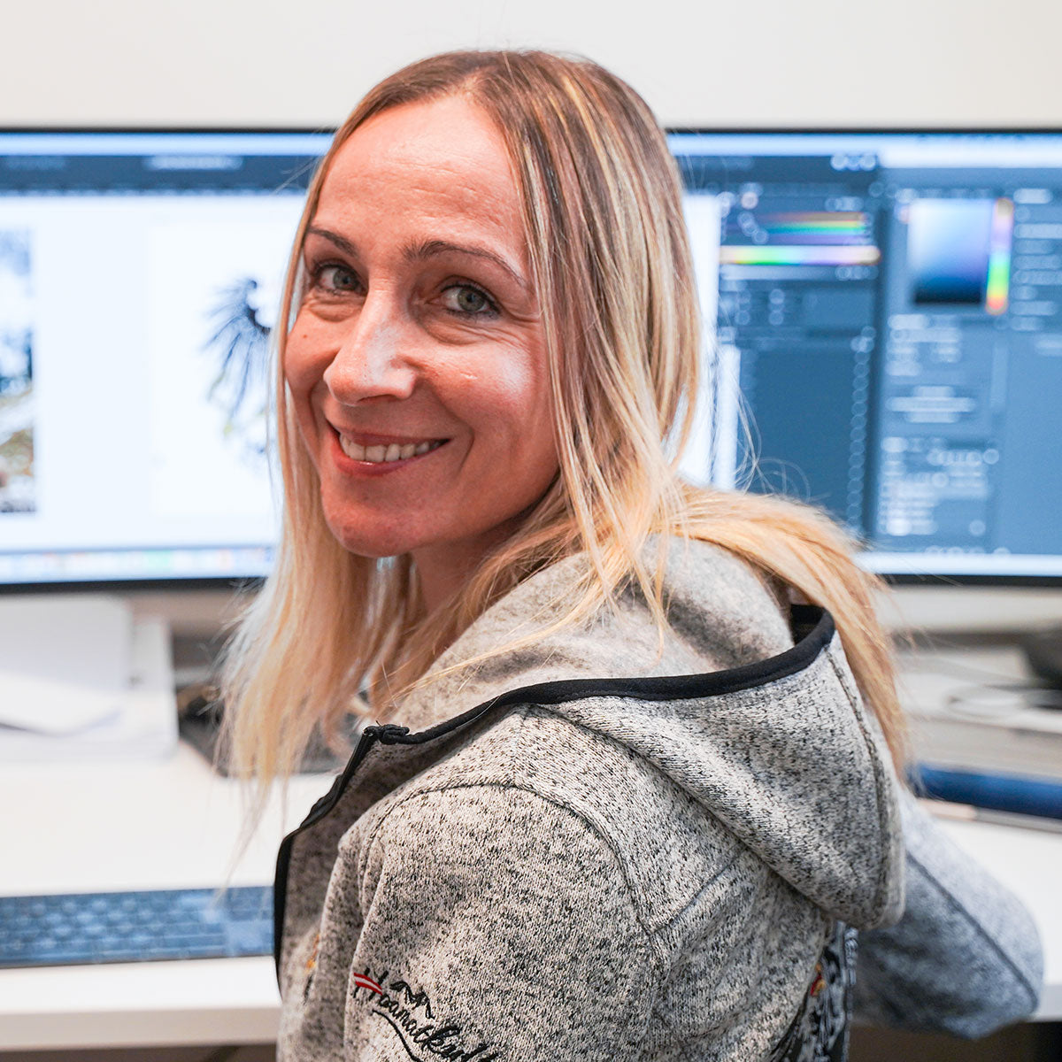 Grafikerin, Hundeliebhaberin und verliert – laut ihren Mitarbeitern – nie den Durchblick.