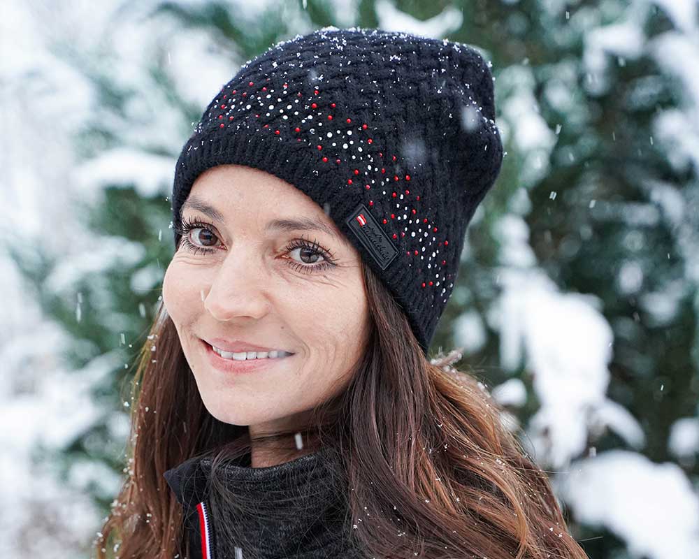 Kennst du diese Momente wo die Sonne auf den Schnee scheint und die Winterlandschaft in glänzenden weiß erstrahlt? Diesen Winter strahlst auch du mit der neuen Kristall & Glitzer Mützen Kollektion mit edlen, funkelnden Strass-Steinchen.