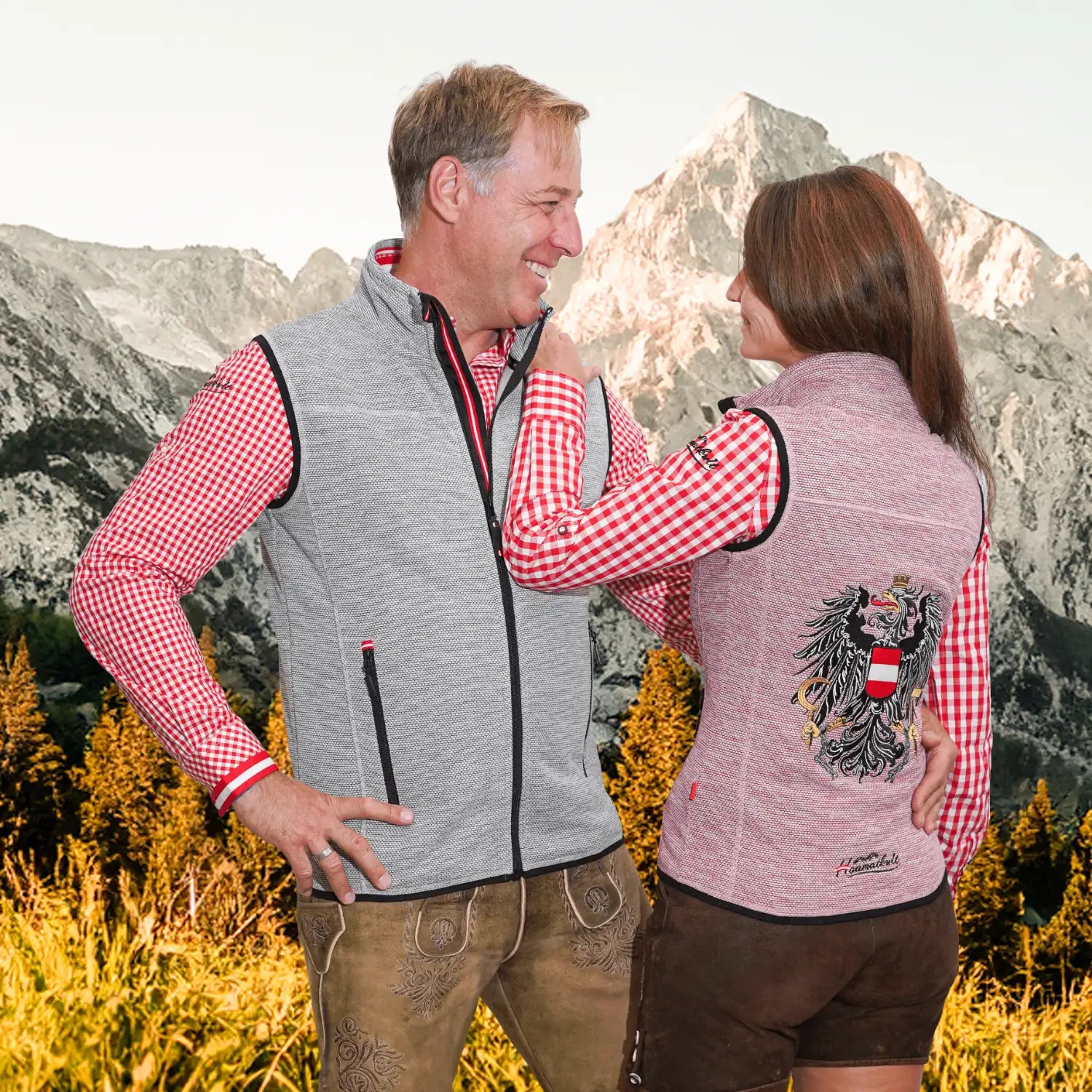 Die Strickfleece Gilets bestehen aus besonders funktionalen und leichten Materialien, welchen optimalen Komfort und maximale Funktionalität bei deiner nächsten Wandertour bieten. Ein angenehmes Tragegefühl garantieren die atmungsaktiven Stoffe der Wanderjacken, welche durch ihren Schnitt außerdem mit passgenauem Sitz punkten. Geschützt gegen Wind und Wetter, steht deinem nächsten Berg Abenteuer nichts mehr im Weg! Auch an kalten, rauen Tagen unterstützt dich dein Hoamatkult-Wandergilet dank der wärmenden Materialien. Dabei musst du auf nichts verzichten und genießt jederzeit optimale Bewegungsfreiheit. Die Wander Jacken Kollektion von Hoamatkult besteht aus recyceltem Polyester, damit du deine Zeit in der Natur so richtig genießen kannst. Triff eine gute Entscheidung und greif dir eine kultige Strickweste zum Wandern von Hoamatkult!