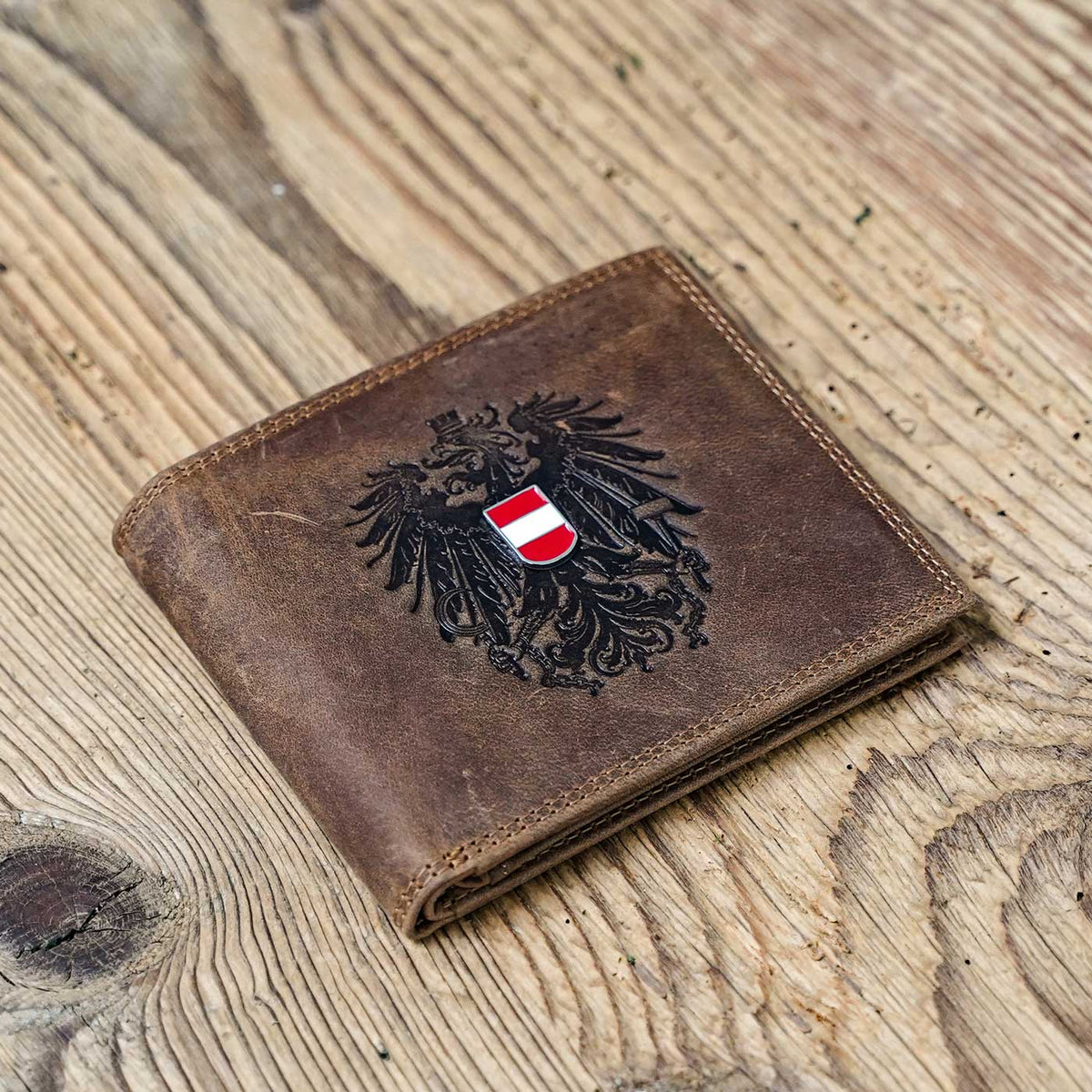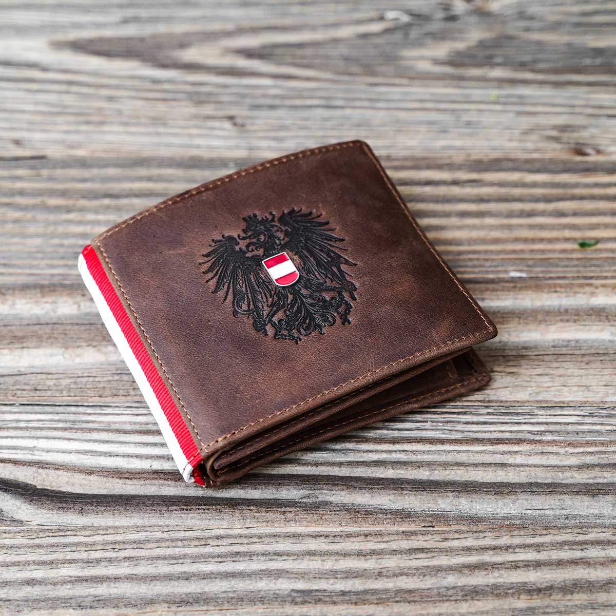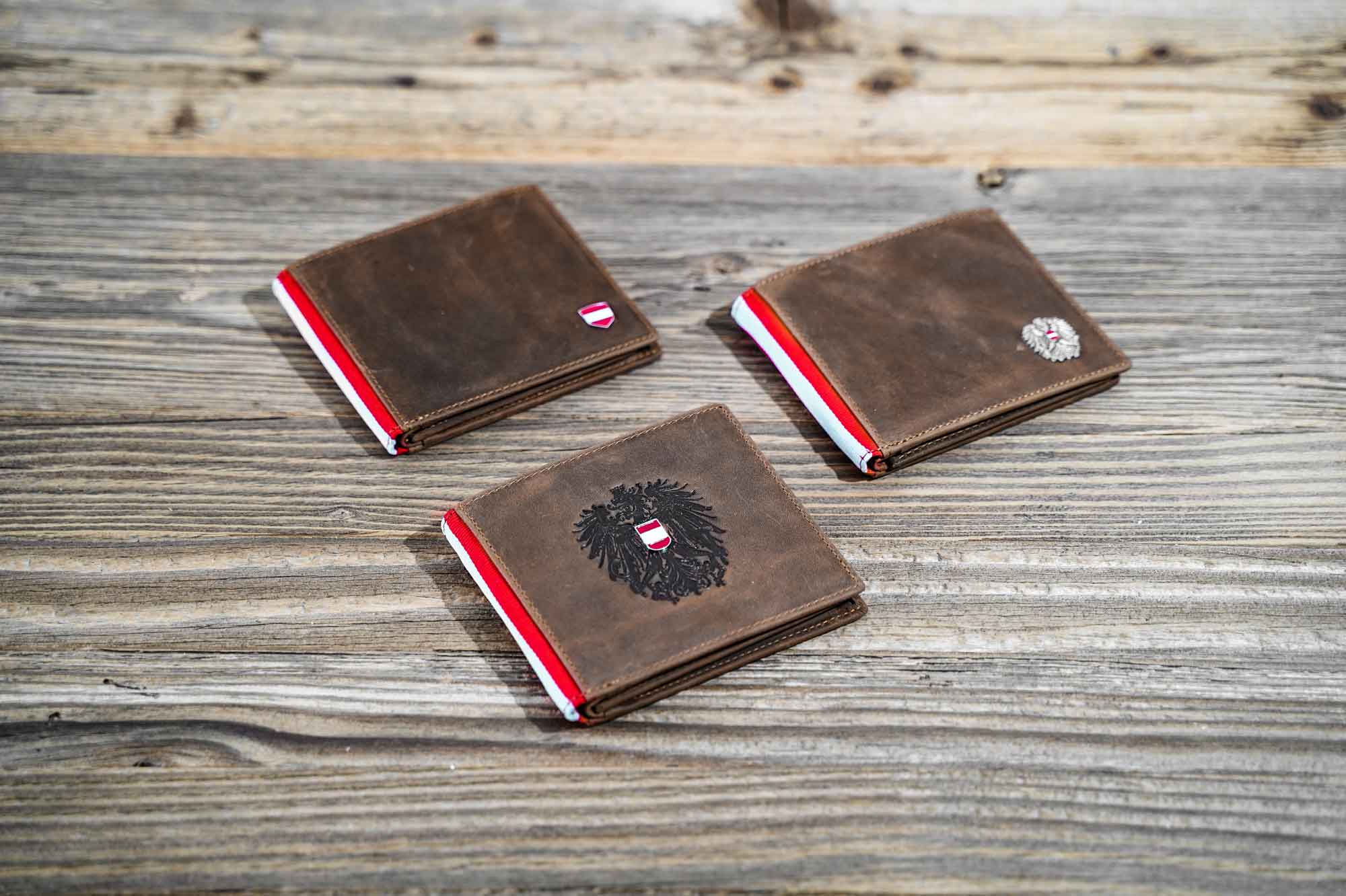 Entdecke die neue Geldtaschen Kollektion, gefertigt aus Premium Voll-Leder in Vintage Optik mit Österreich Veredelungen.