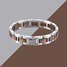 Armband aus Edelstahl in gebürsteter Silberoptik & Walnussholz
