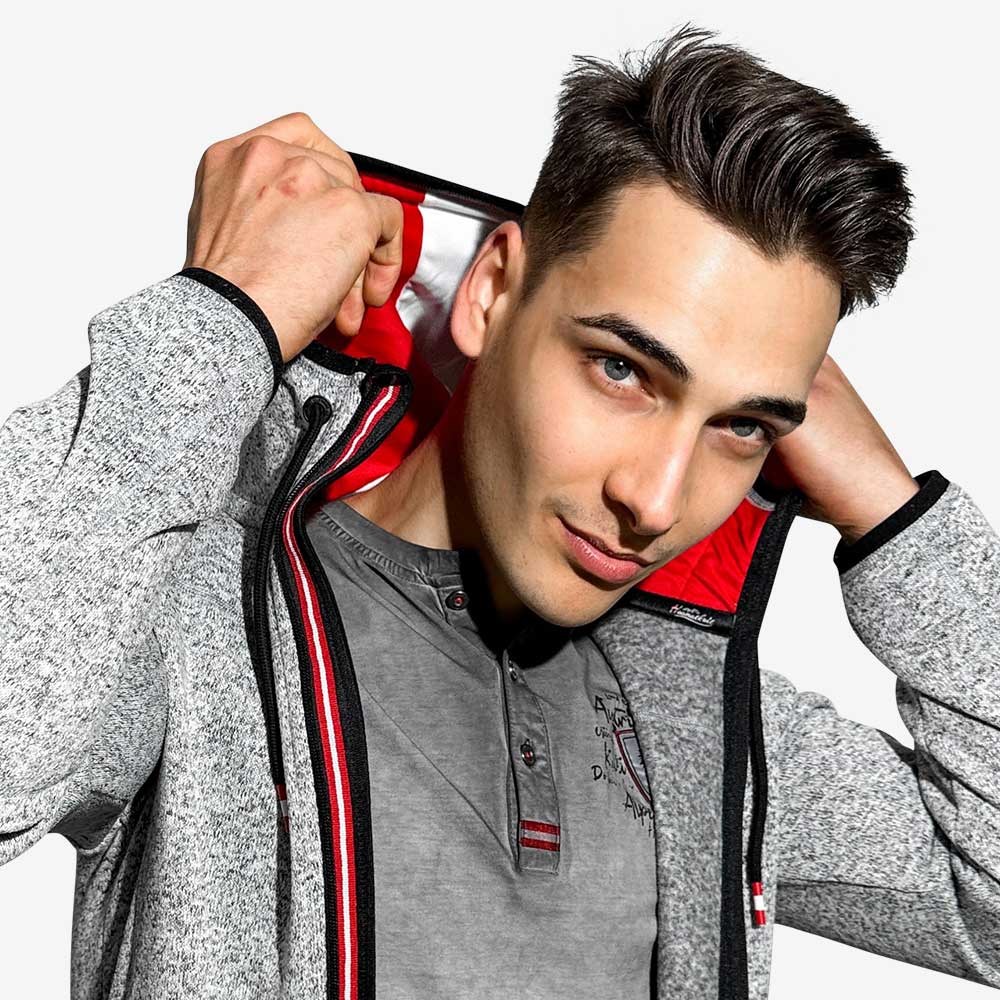 Einfach unverwechselbar: die Kultjacke mit rot-weiß-rotem Kapuzeninnenfutter. Sie kombiniert den bewährten Charme des Klassikers mit modernem sportiven Design. Hervorgehoben durch das schwere, kuschelige Strickfleece in melierter Optik und einer präzisen Berg Wappen Stickerei, ist sie der perfekte Begleiter für dein nächstes Bergabenteuer!