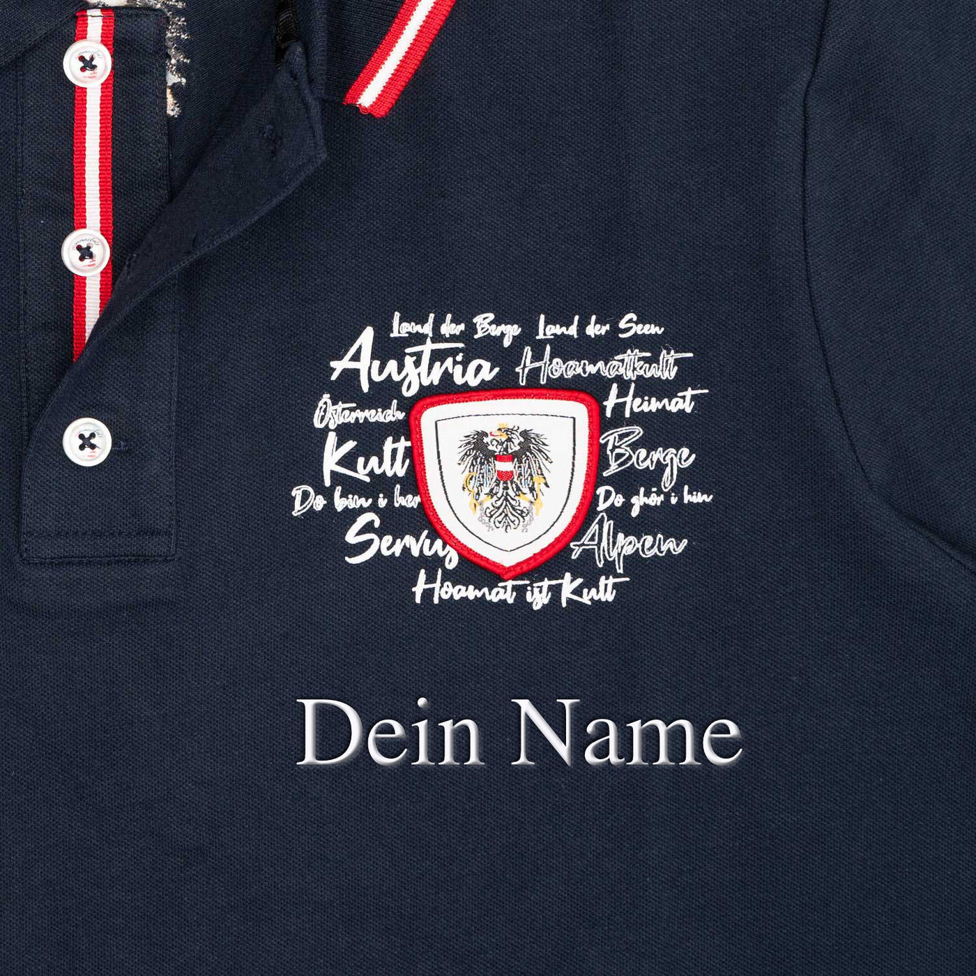 Füge eine hochwertige, individuelle Namensbestickung hinzu und mache dein Österreich Polo zu einem wahren Unikat. Auch perfekt als persönliches Geschenk.