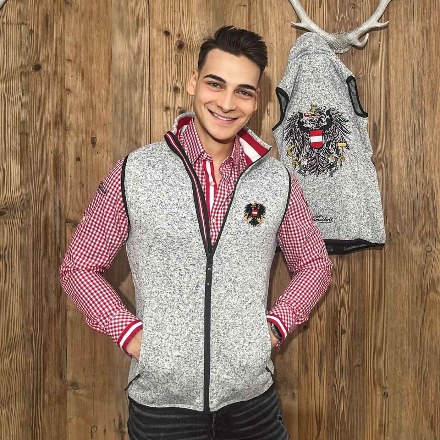 Das kultige Design und die feine Strickoptik machen das Kultgilet zu einem echten Hingucker – egal ob beim Frühschoppen, auf dem Volksfest oder im Alltag. Gefertigt aus hochwertigem Strickfleece-Material hält das Gilet angenehm warm, ist atmungsaktiv und überzeugt mit einer besonders weichen Innenseite. Ob zur Lederhose, zum Trachtenhemd oder lässig zur Jeans – dieses Gilet passt einfach immer und verleiht jedem Outfit einen unverwechselbar trachtigen und kultigen Charakter.