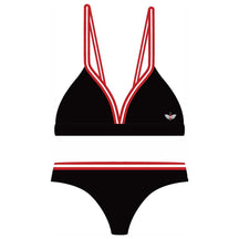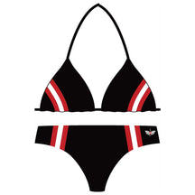 Der Kult Bikini vereint sportliches Design mit alpinem Stil. Das klassische Triangel-Oberteil mit kultigen rot-weiß-roten Streifen sorgt für einen unverwechselbaren Look. Die Träger lassen sich im Nacken und Rücken individuell binden, wodurch sich das Oberteil optimal an deinen Körper anpassen lässt. Das dazu passende Höschen rundet den Look harmonisch ab und wird durch die edle Adler Stickerei zum echten Blickfang. Der hochwertige Materialmix ist schnelltrocknend, elastisch und formbeständig – perfekt für Strand, Bergsee oder Pool.