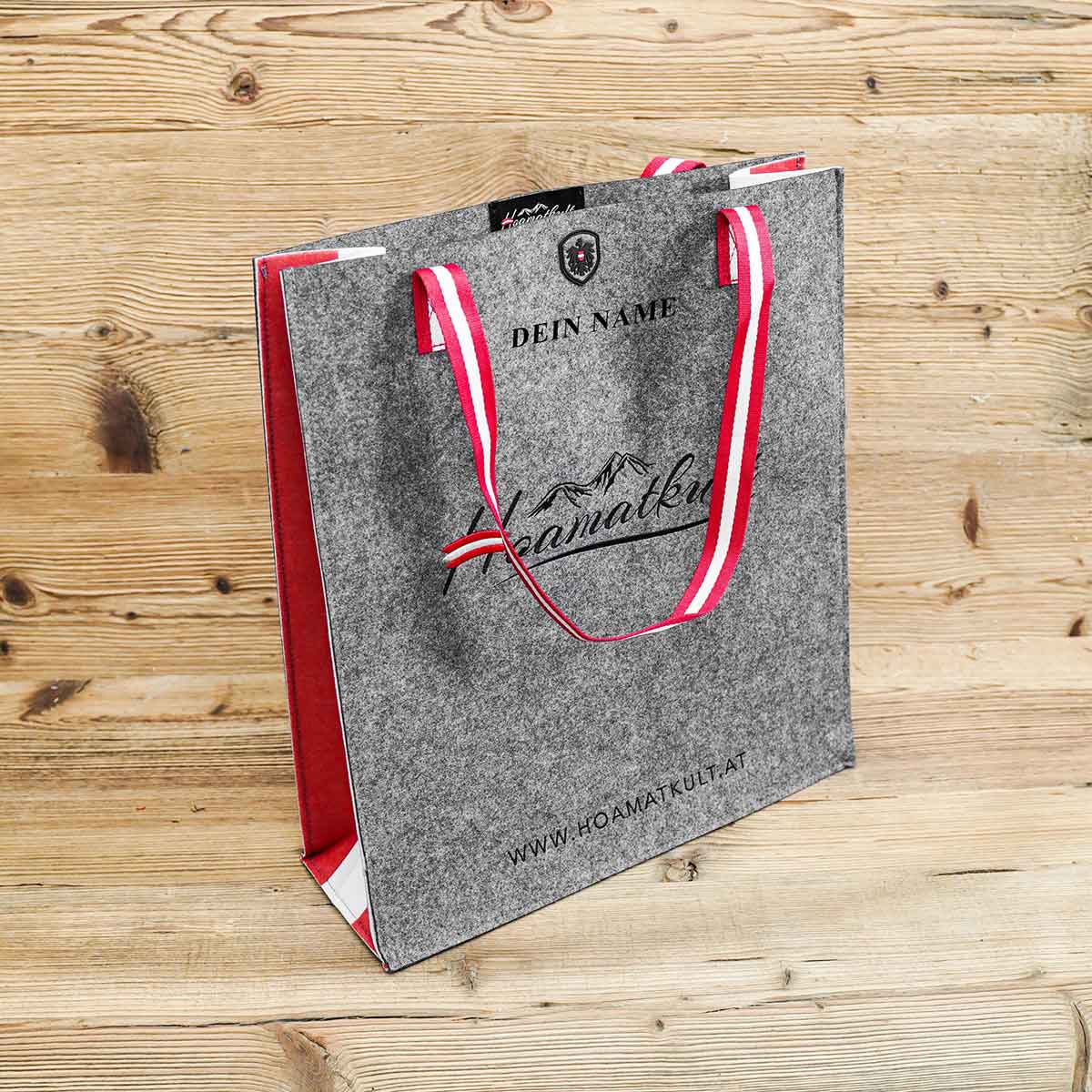 Die Österreich Filztasche überzeugt mit hochwertiger Verarbeitung, praktischem Design und kultigem Österreich-Look. Mit einem großzügigen Fassungsvermögen von ca. 20 Litern bietet sie ausreichend Platz – ob für den täglichen Einkauf, den Wochenendausflug oder den Badetag. Die stabilen, langen Henkel sorgen für angenehmen Tragekomfort, während der robuste Filzstoff langlebig, pflegeleicht und besonders nachhaltig ist. Und das Beste: Auf Wunsch auch personalisierbar mit deinem Namen – für ein echtes Unikat mit Stil und Charakter.
