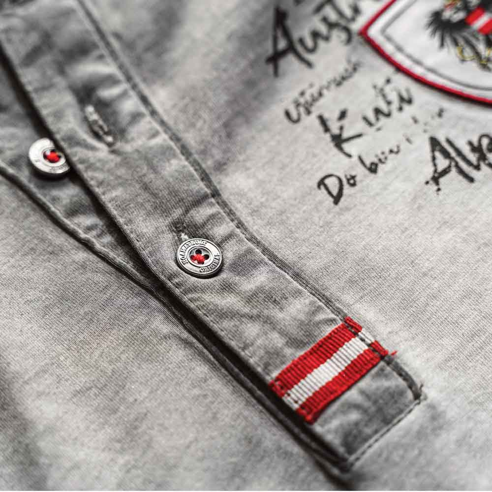 Das originale Österreich Vintage Shirt trägt sich fetzig zur Lederhose und lässig zur Jeans. Der moderne Schnitt in Kombination mit den trendigen Farbschattierungen im Vintage Look machen das Designer T-Shirt zu einem echten Hingucker. Der V-Ausschnitt mit Knopfleiste sowie die aufwendigen Applikationen im Österreich Stil runden das Design stilvoll ab. Hergestellt aus 100% natürlicher Baumwolle in zertifizierter Bio-Qualität bietet es höchsten Tragekomfort!