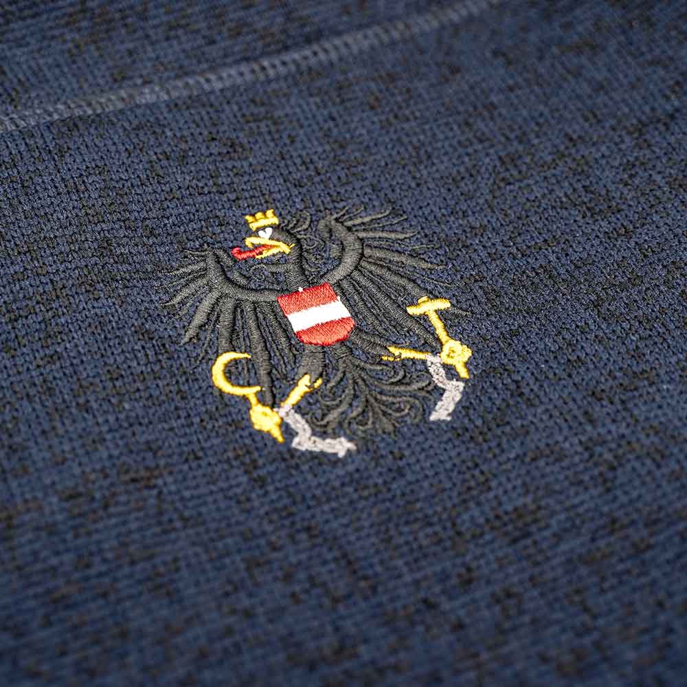 Ein klassisch elegantes Dunkelblau setzt eindrucksvolle Akzente und macht die Österreich Kultjacke zu einem zeitlosen Kleidungsstück. Die dunkelblaue Österreich Fleecejacke lässt sich lässig mit einer Jeans kombinieren und ist ein echtes Highlight zu einem blauen Karo Hemd als Trachtenjacke. Das warme, kuschelig weiche Strickfleece in Kombination mit dem zeitlosen Design macht die Österreich Jacke zum perfekten alltäglichen Begleiter.
