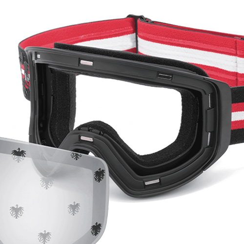 Kristallklare Sicht, höchster Komfort und ein unverwechselbares Design - speziell entwickelt für leidenschaftliche Skifahrer! Die fortschrittliche Anti-Beschlag-Technologie der Performance-Gläser gewährleistet eine klare Sicht unter allen Bedingungen. Der UV-400-Schutz schützt deine Augen vor schädlicher Sonneneinstrahlung. Die Kult-Skibrille ist mit jedem Helm kompatibel. Das einzigartige Merkmal dieser Brille ist das kultige Adler Muster auf dem Glas, das nur von Außen sichtbar ist.