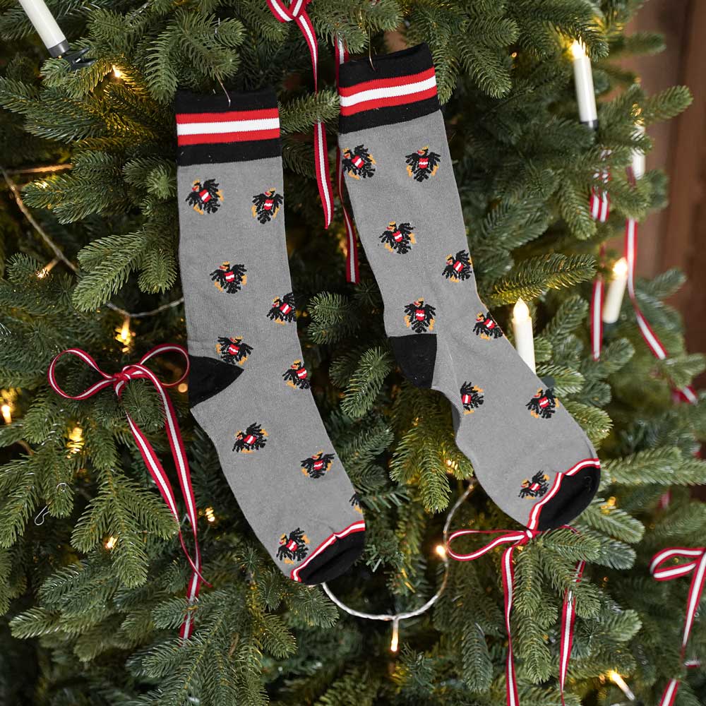 Die hochwertigen Baumwoll-Stretch Socken überzeugen durch ihren hohen Tragekomfort und durch das einzigartige, aufwendig gewebte Österreich Adler Muster. Der Materialmix aus Baumwolle & Elasthan sorgt für optimalen Tragekomfort und ausgezeichnete Qualität. Die Socken werden in einer besonders edlen Geschenkbox geliefert für den perfekten Geschenkemoment!