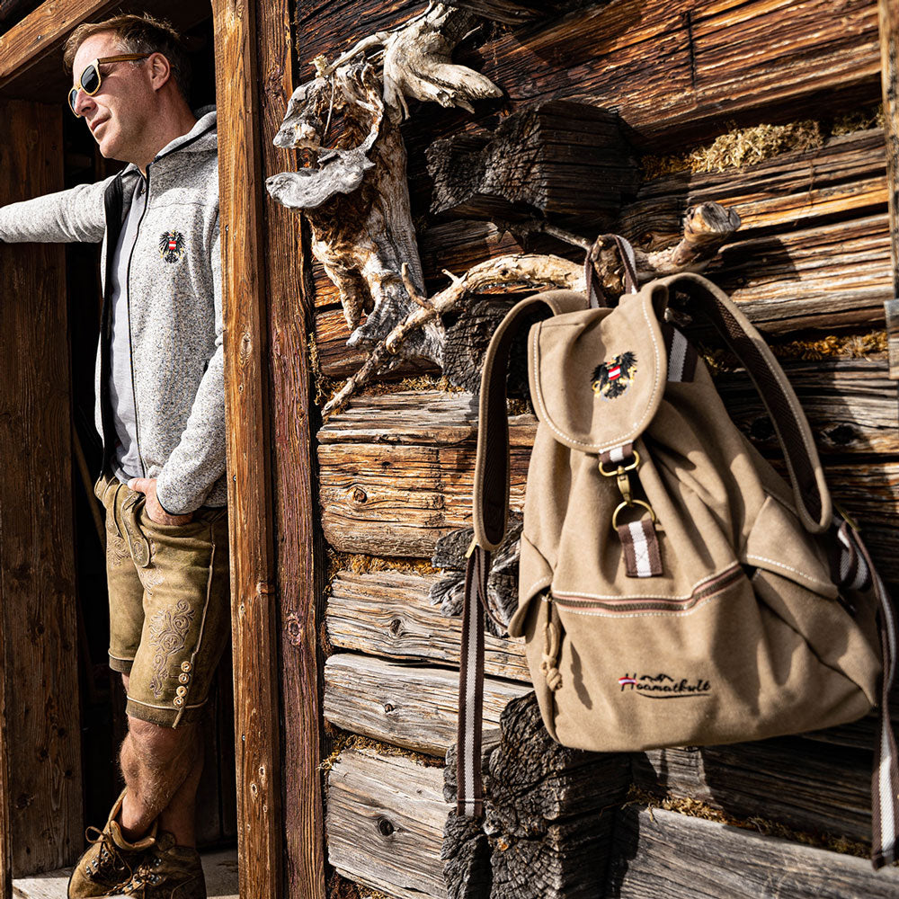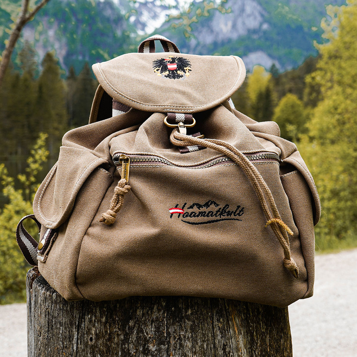 Mit dem Österreich Vintage Rucksack bist du perfekt ausgestattet für deine nächste Wanderung. Der Rucksack überzeugt nicht nur durch seinen einzigartigen Retro Charme sondern ist der perfekte Begleiter für dein nächstes Bergabenteuer.
