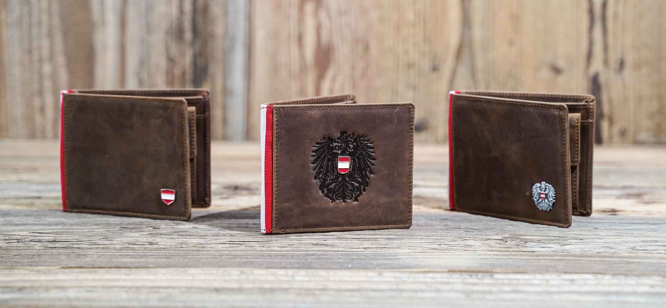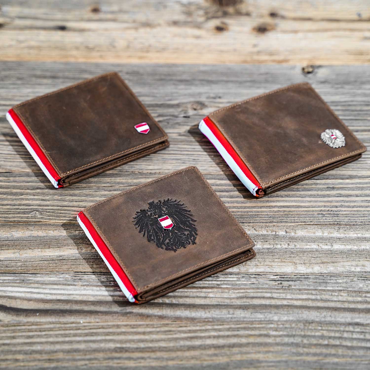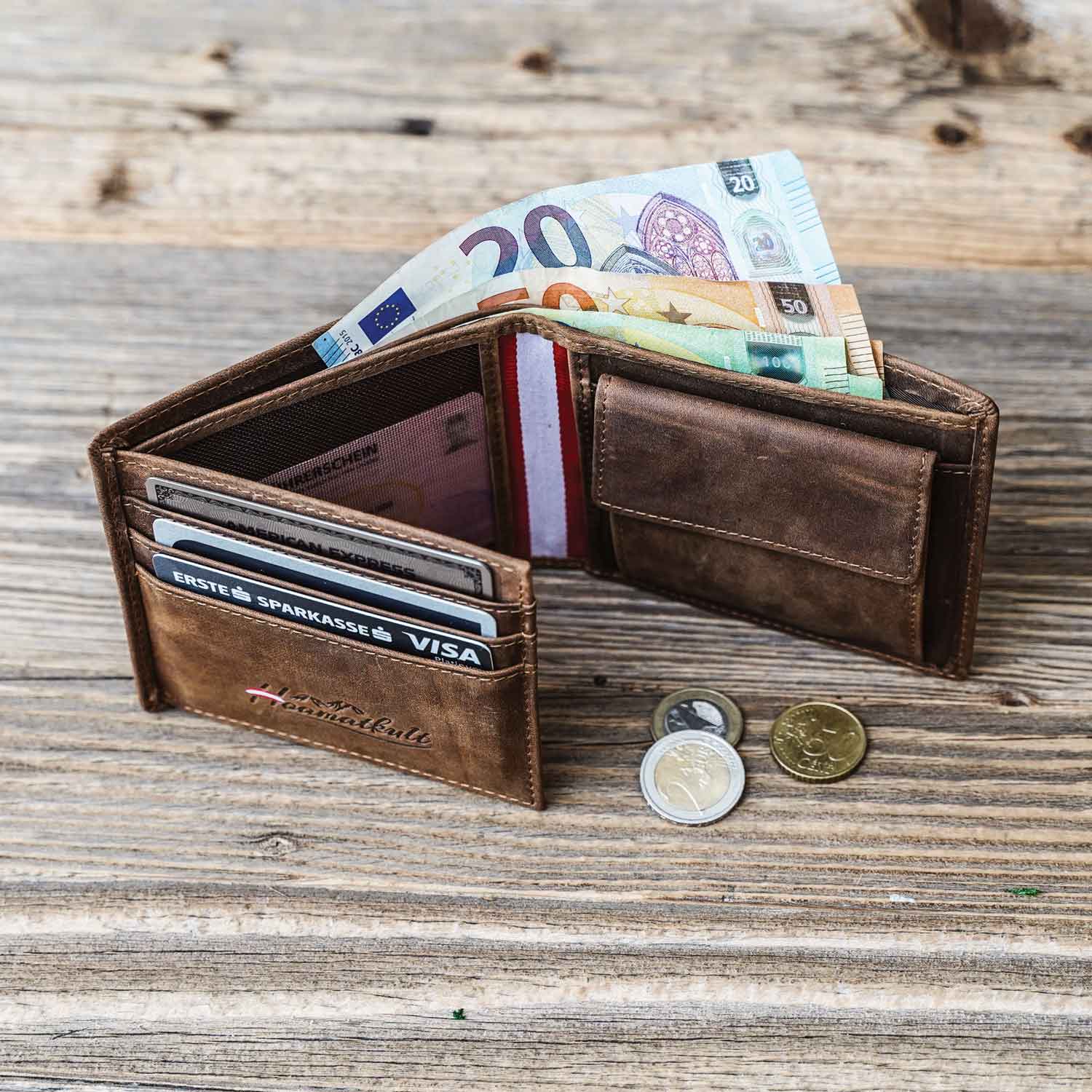 Die 2-teiligen Fächer bieten ausreichend Platz für Scheine aller Größen. Dank des flachen Designs der Österreich Brieftasche passt sie wirklich in jede Hosentasche.